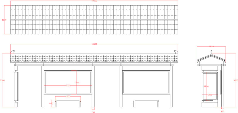 此款仿古候車亭CA-1060主體采用鍍鋅鋼結(jié)構(gòu),表面采用氟碳金屬烤漆工藝,視窗面板采用鋼化玻璃,燈箱內(nèi)置LED燈。具有外形美觀、表面耐腐蝕、抗風(fēng)性能強(qiáng)、使用壽命長(zhǎng)等優(yōu)點(diǎn)。產(chǎn)品的樣式、尺寸、顏色、材質(zhì)、配置等均可按需定制。